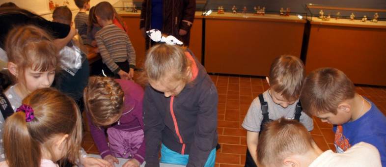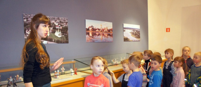 Из рассказа Натальи Зовутиной ребята узнали много нового и интересного о старинной технологии изготовления глиняных игрушек, о городе Каргополе, о жителях, мастерах и традициях этого края. На выставке дети познакомились с красочными игрушками, которые имеют необычные говорящие названия «Полкан», «Берегиня», «Тяни-Толкай, «Ворона-карга».