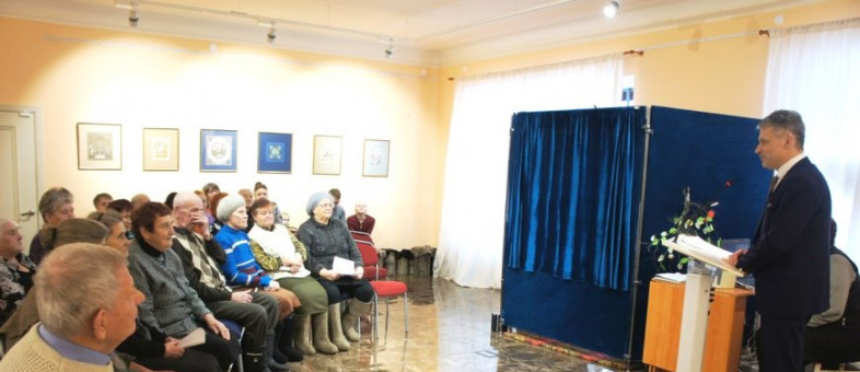 В конце февраля в выставочном комплексе Кирилло-Белозерского музея-заповедника – Народном доме – прошла очередная встреча клуба общения «Дети войны», посвящённая теме «Россия». Главным гостем мероприятия стал глава Кирилловского муниципального района С.В. Усов, который, исполнив гимн клуба вместе с ветеранами, рассказал о проделанной работе за 2017 год и поделился планами на будущее.