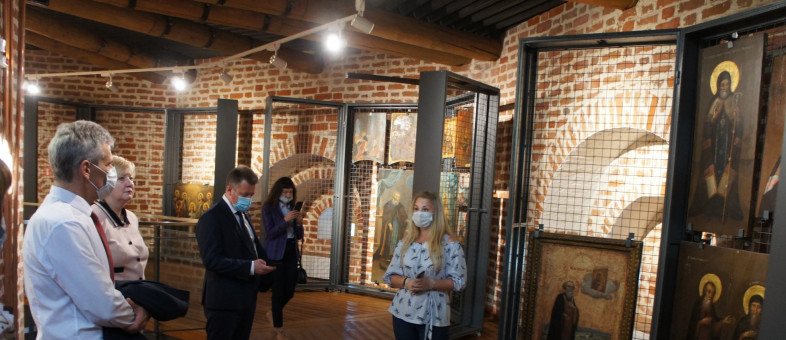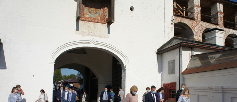 Члены делегации посетили Вологодскую и Казанскую башни, не так давно открывшиеся после реставрации; изучили историю монастыря с высоты птичьего полёта, а также узнали об архитектуре сооружений и строительстве стен XVII века.