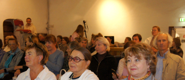 Кирилловчанам и гостям города Оксана Шелест поведала о том, как шла подготовка к показу. «Для меня очень ценно, что Владыка Тихон позволил мне компилировать его тексты для постановки, – подчеркивает режиссер спектакля «Несвятые святые» Оксана Шелест. – Премьера прошла в Москве, в «Крокусе». Состав – сильнейший! Тогда были живы еще Борис Плотников, Василий Лановой, Алексей Глебович Кузнецов… Из молодых – душевный, верующий, добрый, щедрый Егор Бероев, Дмитрий Певцов и Дмитрий Дюжев. Кстати, Дюжев читал несколько рассказов, в числе которых «Вредный отец Нафанаил».