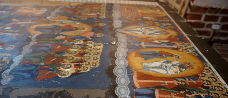 «Памятник XVIII столетия размером 210 на 170 сантиметров в одиночку отреставрировал заведующий отделом реставрации темперной живописи, художник-реставратор Николай Петухов, – сообщает генеральный директор Кирилло-Белозерского музея-заповедника Михаил Шаромазов. – Икона «Страшный суд» – особенная, в музей она поступила из церкви Преображения города Белозерска в 40-е годы прошлого века в остро аварийном состоянии. Между досок основы имелись трещины и перепады, наблюдалась подвижность полотна, в левом углу – отщеп древесины, по всей поверхности лицевой стороны памятника – вздутия с растрескиванием левкаса, осыпи фрагментов живописи с левкасом, многочисленные кракелюры (сетчатые трещины) и утраты красочного слоя. Потребовалось немало сил, чтобы законсервировать памятник от дальнейших разрушений».