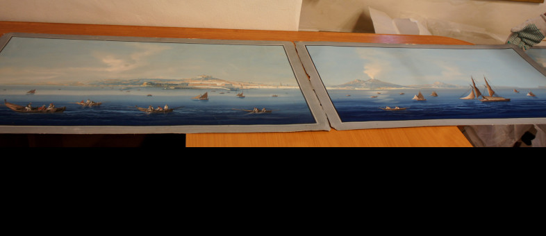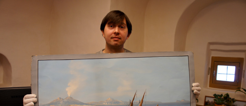 «Неапольские пейзажи были написаны с натуры во второй половине XIX века и относятся к художественному течению Позиллипо, – рассказывает генеральный директор Кирилло-Белозерского музея-заповедника Михаил Шаромазов. – Под школой «Posillipo» подразумевается группа художников, занимавшихся исключительно пейзажной живописью, собравшихся в Неаполе во втором десятилетии XIX века, сначала вокруг Антона Сминка ван Питлоо, а затем вокруг Джачинто Гиганте. Это не было официальной школой или ассоциацией. Обобщающее наименование группы художников было дано в 1867 году итальянским историком Паскуале Виллари. Название школы восходит к названию холмистого выступа Позиллипо в северной части Неаполитанского залива, расположенного в современных границах города Неаполя. Район, откуда открывается один из лучших видов на Неаполитанский залив. В 1810-е годы вдоль берега моря была проложена дорога, которая стала привлекать в эту местность туристов. Им показывали останки античных вилл и амфитеатра, а также гроты, в одном из которых, по местному поверью, был похоронен Вергилий. Предметами, востребованными путешественниками, были картины, вызывающие воспоминания об этом месте, играющие ту роль, которую сейчас играют фотографические открытки. Таким образом, художники создавали в большем количестве оригинальную сувенирную продукцию. Безусловно, картины, поступившие в музей, являются оригиналами и имеют художественную, культурную, научную ценность. Кроме того, если составить две из них вместе, получится диптих».