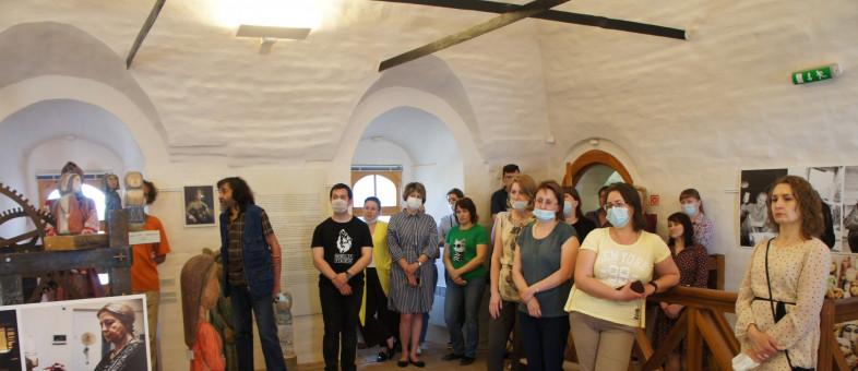 Всероссийская акция в Кириллове продолжилась открытием выставки на Колокольне! «Деревянный народец» Евгении Кудриной привлёк внимание художников, дизайнеров и музейного сообщества. Живые скульптуры из цельного дерева, необычные костюмы, домотканные авторские предметы на площадке архитектурного сооружения XVIII века привлекли особое внимание посетителей.