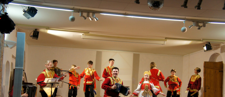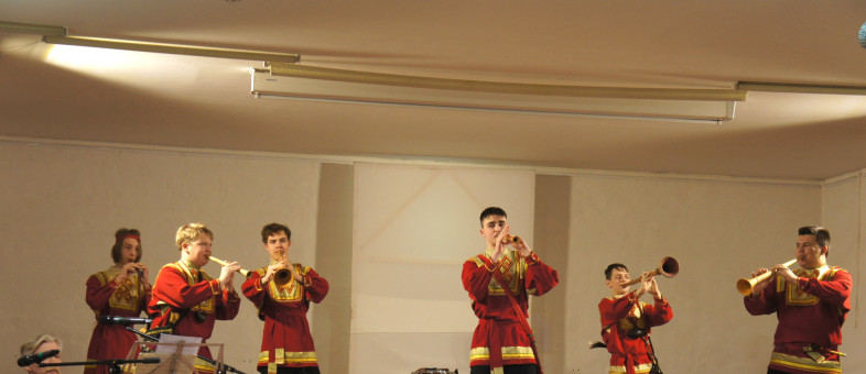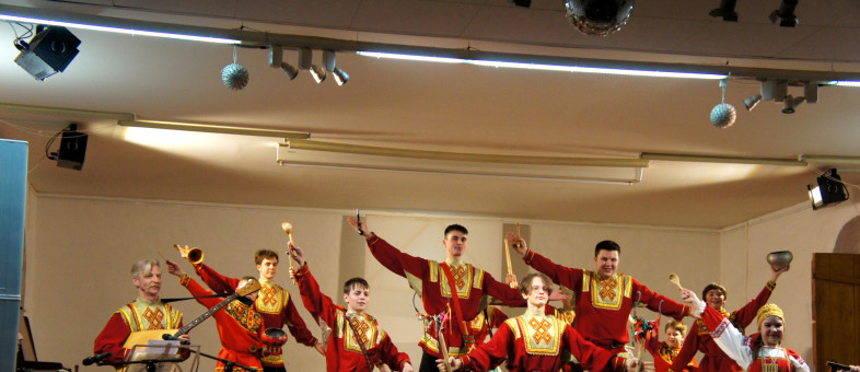 Культурную весну в Кирилло-Белозерском музее-заповеднике фееричным концертом открыли артисты ансамбля народных инструментов «Русский сувенир»! С первых нот они захватили внимание зрителей удивительной игрой на ложках, жалейках, рожках, свирели, окарине, гармонях и балалайках, и, что совсем неожиданно – на косах, пилах, топорах, ухватах, чугунках и стиральной доске!