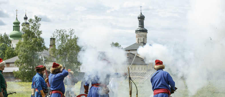 Фестиваль "Кирилло-Белозерская осада", проходивший на территории Кирилло-Белозерского музея-заповедника 11 и 12 июня, представил вниманию зрителей конные и артиллерийские бои, ремесленные и военные мастер-классы, историческое дефиле.