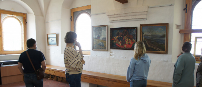 На паперти Трапезной палаты представлены десятки картин и графических материалов! Официальное открытие выставки «Истоки» состоялось 28 мая. Прошло всего несколько дней, а картины художника из Череповца уже посмотрели сотни гостей музея из разных городов страны.