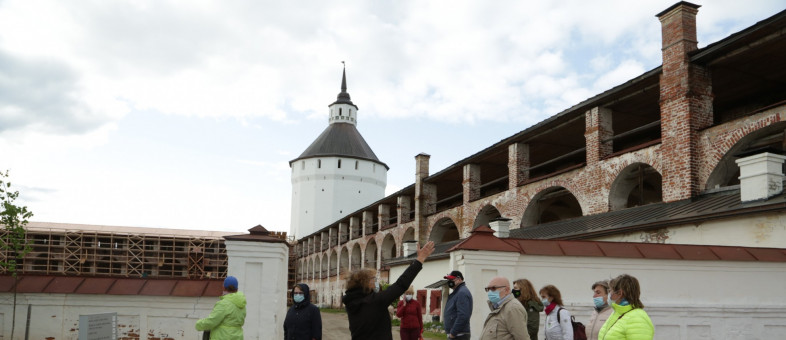 Специалисты побывали в Трапезной палате, Успенском соборе и Колокольне XVIII века. Познакомились с памятниками древнерусского искусства XV века, историей и архитектурой ансамбля монастыря.