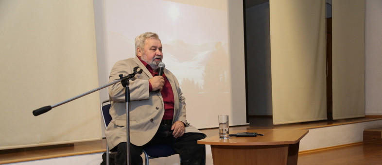 Первым выступал Анатолий Константинович Ехалов — телеведущий, музыкант и исполнитель, путешественник, автор и режиссер более 150 телевизионных фильмов о Вологодчине и ее жителях, лауреат многочисленных премий и фестивалей в области кино и литературы, автор 16 книг и большого количества сценариев.