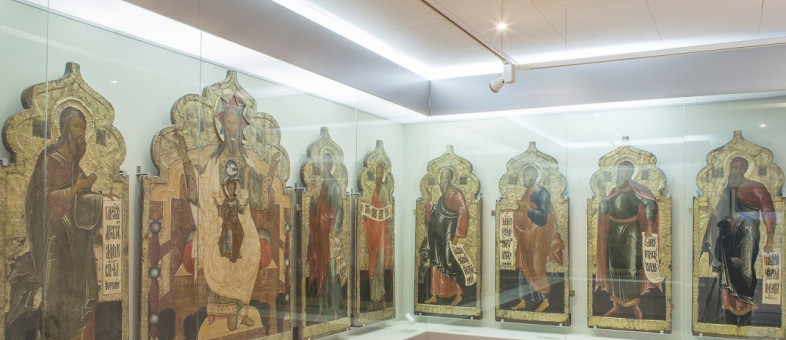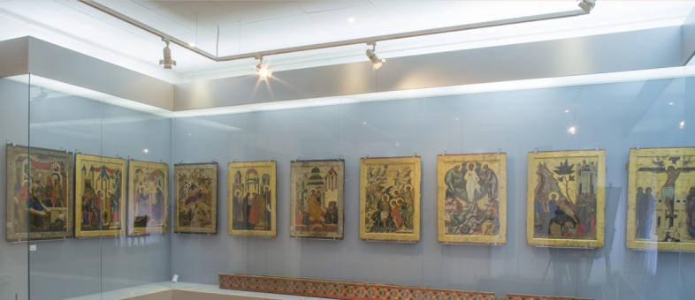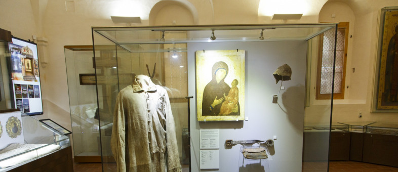 На экспозиции представлены иконы, лицевое и орнаментальное шитье XV-XVII вв. из собрания музея, в том числе и иконы из иконостаса Успенского собора, находящиеся в собрании музея.