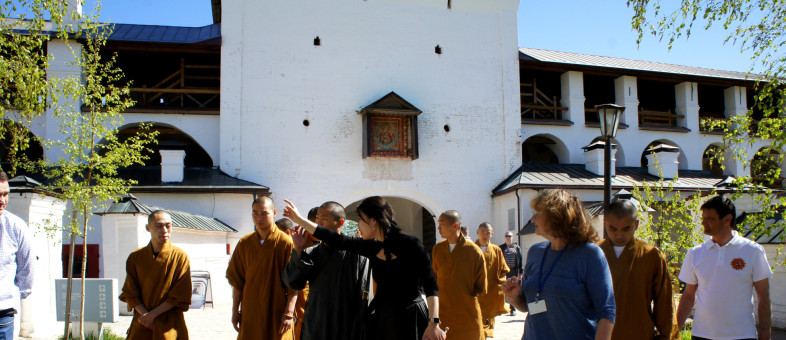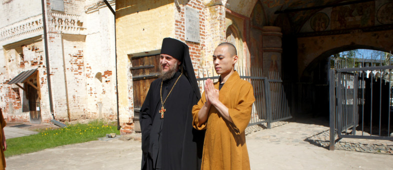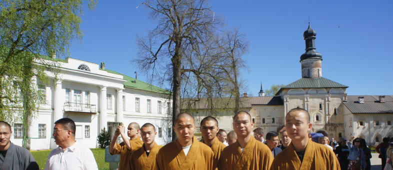 «Делегация из 11 монахов Шаолиня в председательстве с директором Центра боевых искусств Юрием Филимоновым впервые посетила крупнейший православный монастырь, – сообщает генеральный директор Кирилло-Белозерского музея-заповедника Михаил Шаромазов. – Ещё вчера монахи выступали с показательной программой на Международном фестивале боевых искусств в Череповце, а сегодня уже знакомятся с культурным наследием Русского Севера в Кириллове. Нашим гостям мы показали архитектурные сооружения обители, поднялись вместе на Колокольню, с открытой площадки которой открываются живописнейшие виды, показали первый каменный храм монастыря – Успенский».