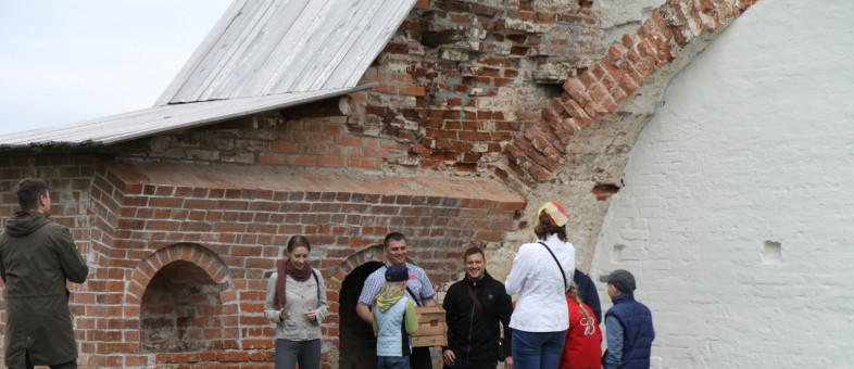 Чуть позже на территории Ферапонтова монастыря состоялась историко-ориентировочная игра «Монастырский клад». Правила игры заключаются в том, что две команды выполняют задания ведущего – ищут предметы по описанию в экспозициях, ищут спрятанные фрагменты карты на территории монастыря, отвечают на вопросы из истории русского монашества. Первой команде, собравшей все фрагменты карты, открывается место клада, спрятанного в тайном месте в старинном сундуке. Игра проходила весьма динамично и напряженно. Две команды по 10 человек каждая не уступали друг другу до самого финиша. Участники отвечали на все специально приготовленные сложные вопросы, активно взаимодействовали друг с другом во время поиска карты. В итоге одна из команд раньше составила карту. Клад был найден, в нем «оказались» призы для всех участников. Подобные подвижные формы изучения нашей истории всегда приходятся по душе людям всех возрастных категорий.