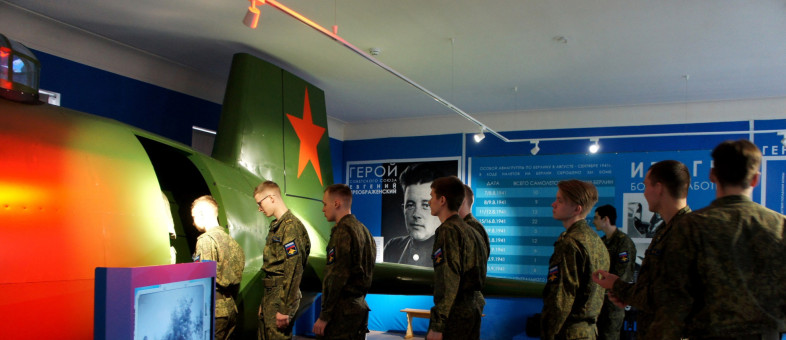 В Музее Евгения Преображенского курсанты побывали впервые. Совместный проект Кирилло-Белозерского музея-заповедника и Российского военно-исторического общества, посвященный советской авиации времен Великой Отечественной войны, впечатлил молодых людей. С интересом они слушали рассказ о летчиках – уроженцах Кирилловского района, участниках войны, конструкторах авиационной техники и авиационного вооружения.