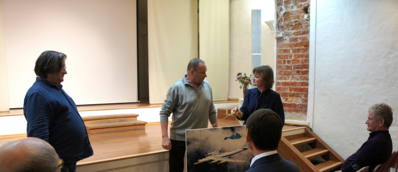 В официальных мероприятиях принял участие и представитель Вологодского землячества в Москве, руководитель проекта по увековечиванию памяти Е.Н. Преображенского Сергей Никешин. В фонд музея он передал картину с изображением самолёта ТУ-142. «Этот самолёт носит имя Евгения Преображенского, – пояснил С.Г. Никешин. – Он участвовал в параде, посвященном Дню военно-морского флота, который проходил в Санкт-Петербурге. Вылетал из гарнизона Федотово, а возвращался, сделав круг над Кирилловом».