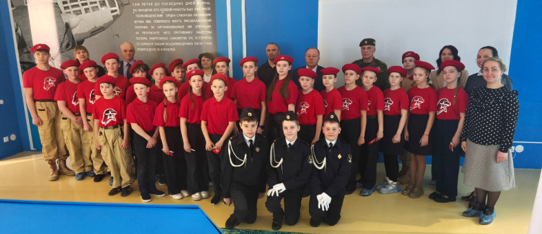 Патриотическое мероприятие в филиале Кирилло-Белозерского музея-заповедника завершилось выступлением кадетов Горицкой средней школы – в их исполнении прозвучала песня «Честь имею», и экскурсией по современному мультимедийному и интерактивному военно-историческому музею Вологодчины.