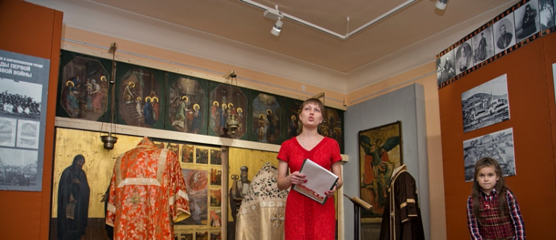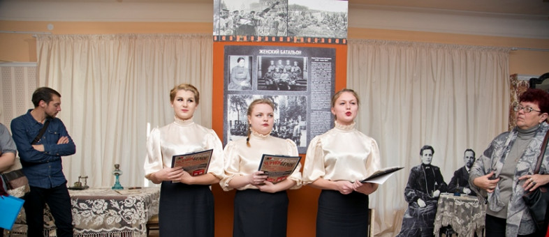 На открытии выставки о женщине, возглавившей женский батальон смерти и являющейся полным Георгиевским кавалером, рассказывали три революционерки. Из уст молодых актрис – студенток Вологодского областного колледжа культуры и туризма Юлии Гладышевой, Алёны Исаковой и Анны Кулаковой – слова о Бочкарёвой не лились, а чеканились: «Когда началась первая мировая война, Мария приняла решение записаться в ряды армии. Записать женщину в 24-й резервный полк военные отказались… Тогда Бочкарёва отправила телеграмму царю Николаю II, на которую последовал положительный ответ. В феврале 15-го года она оказалась на фронте в 28 Полоцком полку. Мария Леонтьевна ходила в разведку… В 1915 году Марию произвели сначала в младшие, а затем в старшие утерофицеры».