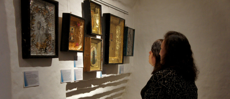 Отклик у посетителей выставки вызвала и история из села Нижегородской области, когда в доме местных жителей во времена гонений в красном углу днём стояли портреты Карла Маркса и Ленина, а за ними – иконы, а вечером, когда уже никто посторонний в дом не мог прийти, место общественных деятелей занимали местные святые.