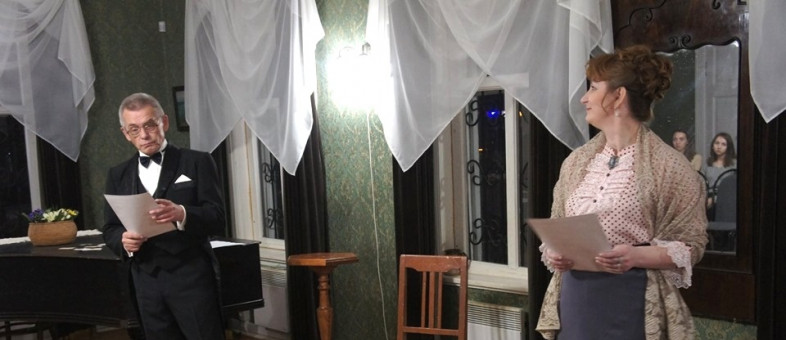 На открытии выставки вниманию зрителей артисты Народного театра Василий Грот (режиссер) и Людмила Грот представили прочтение рассказала "Месть" Чехова.