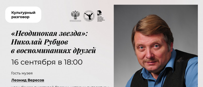 16 сентября филиал Кирилло-Белозерского музея-заповедника «Музей-квартира В.И. Белова» приглашает на «Культурный разговор» с исследователем жизни и творчества поэта Николая Рубцова Леонидом Вересовым.