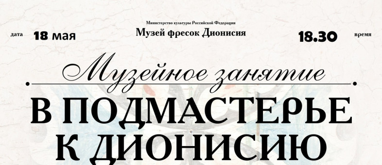 В рамках акции для посетителей музея будет проведён мастер-класс «Пасхальная открытка» шрифтом Дионисия и элементами русской вязи (12+), а также – музейное занятие «В подмастерье к Дионисию», где вы узнаете об известном иконописце, фресковой живописи и познакомитесь с фресками Дионисия 1502 года, находящимися в Соборе Рождества Богородицы. В этот день гостям музея выпадет возможность изготовить фреску по технологии древних мастеров собственными руками! За справками обращайтесь по телефону: 8 (817 57) 4 92 61.