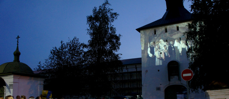 «На Казанской башне, которая является главным входом в монастырь, вместе с Арт-пространством «Fabrica» при поддержке Министерства культуры РФ мы осуществили показ сцен из «Достояния республики», «Пелагеи и белого бульдога», «Монаха и беса», «Раскола», «Апостола», «Обители», «Крестьянского сына», снятых на территории музея и города, – сообщил генеральный директор Кирилло-Белозерского музея-заповедника Михаил Шаромазов. – Представленные кадры нашли отклик у участников акции – многие из них увидели на большом экране своих знакомых, принимавших участие в съёмках массовых сцен; известных актёров в любимых локациях – интерьере ансамбля монастыря».