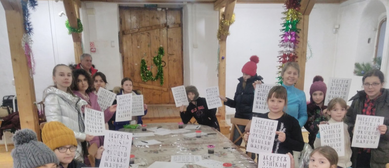 Изучению кириллической азбуки с характерными особенностями шрифта выдающегося иконописца был посвящен мастер-класс «Каллиграфия Дионисия». Данная азбука была создана сотрудниками музея на основе надписей и их фрагментов, сохранившихся в соборе Рождества Богородицы. Участники занятия старались воспроизвести с помощью перьевых ручек шрифт азбуки Дионисия, который, как и стенопись, отличается утонченной изящностью и благородной красотой.