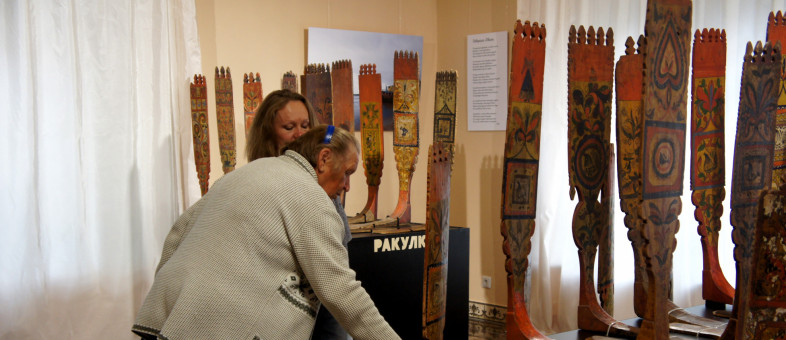 Эта выставка дала нам множество открытий – мы впервые показываем ракульские прялки с портретами; пять работ Дмитрия Витязева, который во всех изданиях представлялся росписью одного предмета из собрания Сергиево-Посадского музея; показываем развитие форм прялок, характерных для Вологодской земли; мы выделили семь стилистических групп мастеров из семьи Кузнецовых-Чистиковых; впервые отдельным предметом исследования сделали пучужские прялки, которые показали – истоки всей северодвинской прялки находятся в Пучуге!