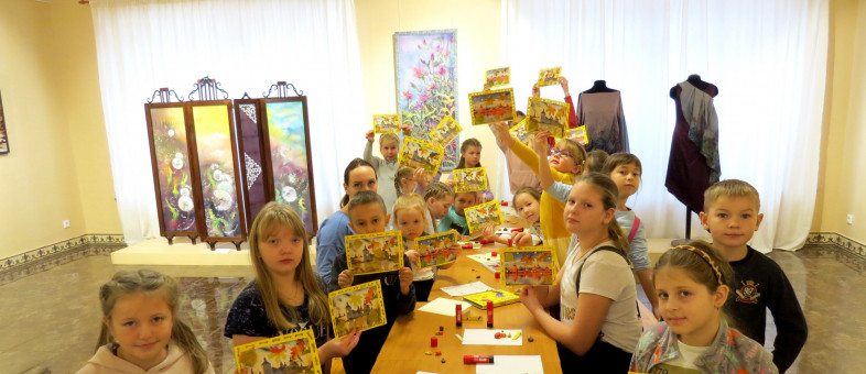 Юные участники «Осенних каникул в музее» порадовали учителей своими изделиями – картинами «Северная обитель» и «Осень в городе» с изображением ансамбля Кирилло-Белозерского монастыря, а также – панно «Рябина».