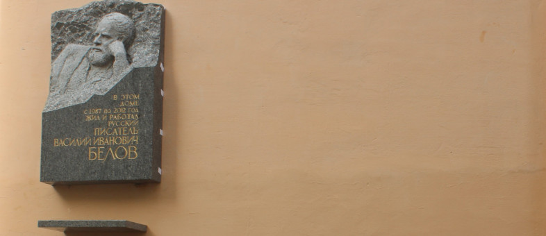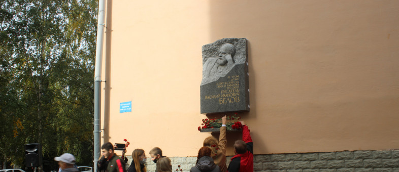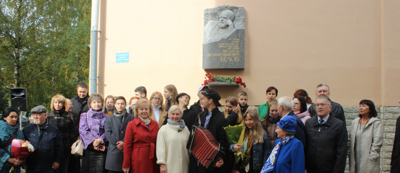 В областной столице событие – на доме, в котором жил и работал русский писатель Василий Белов, была установлена памятная доска! Именно в этом здании располагается филиал Кирилло-Белозерского музея-заповедника – Музей-квартира В.И. Белова. Автором горельефа выступил член Союза художников России, скульптор, старший преподаватель факультета дизайна СПБГу Ю.В. Евграфов (род.1952 г.).