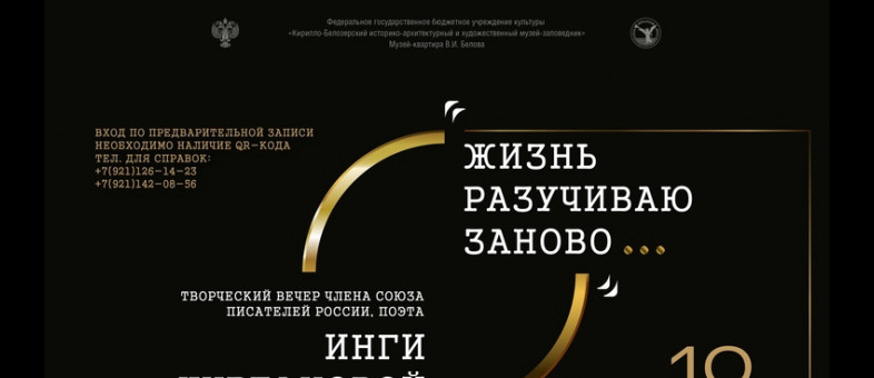 Филиал Кирилло-Белозерского музея-заповедника «Музей-квартира В.И. Белова» 19 февраля в 16 часов приглашает на творческий вечер поэта Инги Чурбановой «Жизнь разучиваю заново».