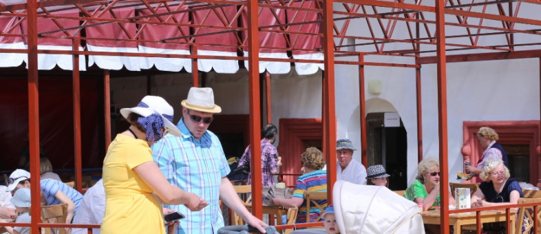 Ни пушечные выстрелы, звук от которых разрывался в небе, ни стремительные боевые кони, участвующие в схватках, ни острые копья пеших турниров не смогли напугать маленьких зрителей. Многим гостям фестиваля недавно исполнилось лишь по два-три года. По Кирилло-Белозерскому музею-заповеднику они перемещались на личных колесницах.