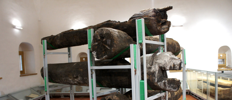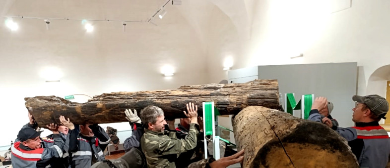 300-килограмовые брёвна возрастом около 500 лет сотрудники Кирилло-Белозерского музея-заповедника сегодня поместили в новую постоянную экспозицию. Четыре огромнейших бревна, которые ранее служили опорой для сооружений XVI века, по территории монастыря мужчины переносили вдесятером.