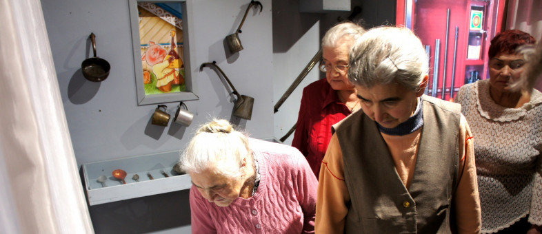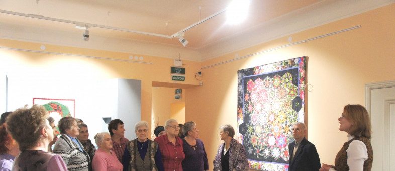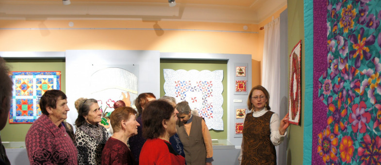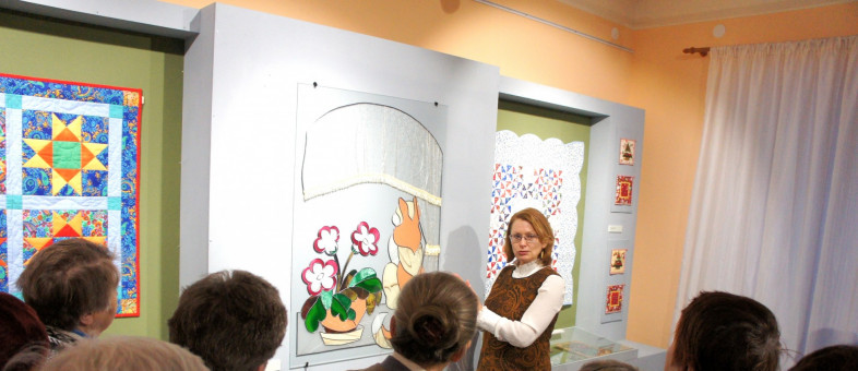Окунуться в атмосферу прежних лет, когда наши хозяюшки и мастерицы шили лоскутные одеяла и прихватки, когда храмы украшали витражами, первыми довелось участникам клуба общения «Мы – дети войны», руководителем которого является экскурсовод Музея Марина Травникова.