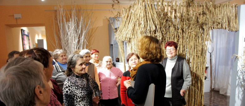 Встреча проходила в предновогодние дни, во время, когда в Народном доме была открыта ещё одна диковинная выставка – «Три поросёнка 20 лет спустя», квест по которой для участников клуба «Мы – дети войны» провела экскурсовод Кирилло-Белозерского музея-заповедника Ольга Кузьмичёва.