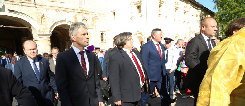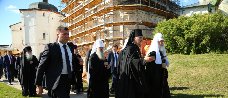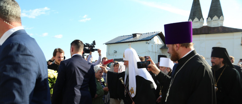 Сегодня, 16 июня Кириллов и Ферапонтово посетил Святейший Патриарх Московский и всея Руси Кирилл. Он пообщался с прихожанами, посетил Успенский собор, осмотрел территорию Кирилло-Белозерского музея-заповедника и Ивановского монастыря, а также зашёл в церковь преподобного Кирилла Белозерского, дабы отдать дань памяти вологодскому святому, основавшему столь грандиозную обитель.