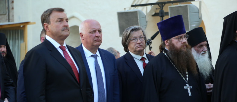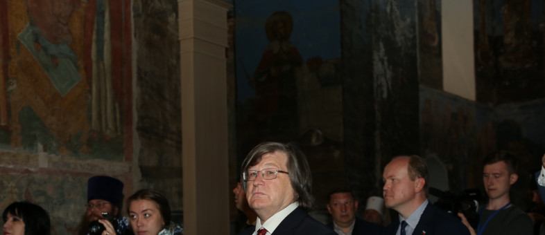 Генеральный директор Кирилло-Белозерского музея-заповедника Михаил Николаевич Шаромазов для Святейшего Патриарха Московского и всея Руси Кирилла провел экскурсию по экспозициям Музея фресок Дионисия и подарил копию книги из библиотеки основателя монастыря в Кирилло-Белозерском музее-заповеднике