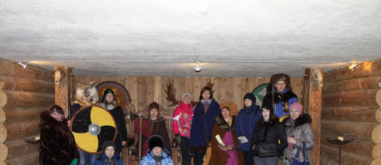 Затем гости посетили «Дом викингов» – воссозданное древнескандинавское жилище. В период раннего средневековья шведские викинги – воины и купцы – были частыми гостями на Руси, в том числе и в Сугорье. Быт, кухня, одежда, оружие, ритуалы викингов раскроют свои древние тайны в этом загадочном месте, где пища готовится на каменном очаге, а стены украшены ткаными гобеленами, шкурами и черепами волков и медведей. Невероятные чувства испытали гости, услышав древнюю боевую песнь викингов «Viellemann» в сопровождении сакпипы – старинной шведской волынки. Фотографирование в костюмах с оружием викингов между священными родовыми столбами и посещение загадочного подземелья привело участников программы в настоящий восторг.