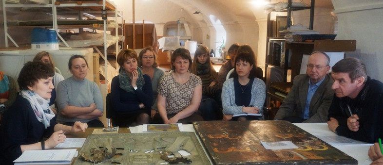 Икона «Образ святых Белозерских чудотворцев перед Новозаветной Троицей» реставрируется Н.В. Петуховым под руководством И.Н. Федышина и будет показана на выставке в процессе реставрации, так как раскрытие проходит очень медленно, тяжело из-за неровного покровного слоя. В фондах хранится оклад с иконы, который в ближайшее время отправится в реставрационную мастерскую по металлу.