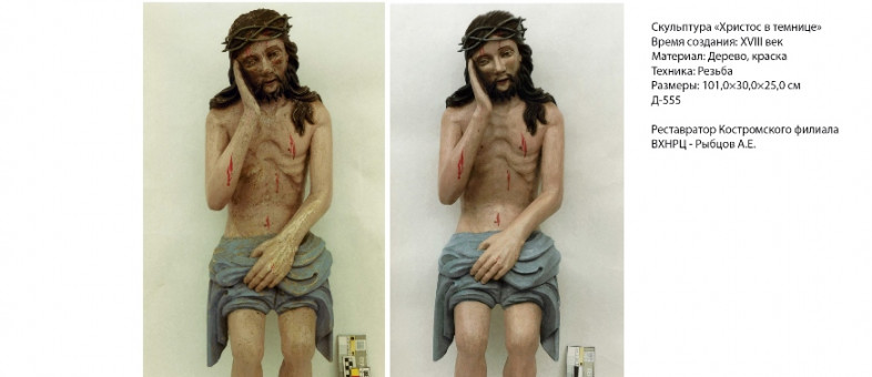 Из Костромского и Вологодского филиалов ВХНРЦ имени академика И.Э. Грабаря из реставрации вернулось шесть предметов: три деревянные скульптуры, картина Б.И. Горбунова «Девушка на берегу», икона «Богоматерь Одигитрия» и повойник.