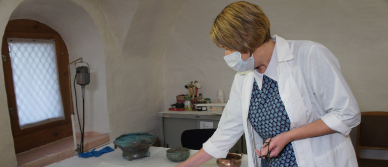 Большое внимание уделяется сохранению, консервации и реставрации музейных предметов из коллекции металла. Этой ответственной работой занимаются художники-реставраторы художественного металла Светлана и Наталия Смирновы. В их руки попадают ценные предметы из коллекции драгоценных металлов. Совсем недавно ими был отреставрирован серебряный оклад XVI-XVIII веков с иконы «Троица» из Успенского собора, который в настоящий момент представлен в главной экспозиции музея.