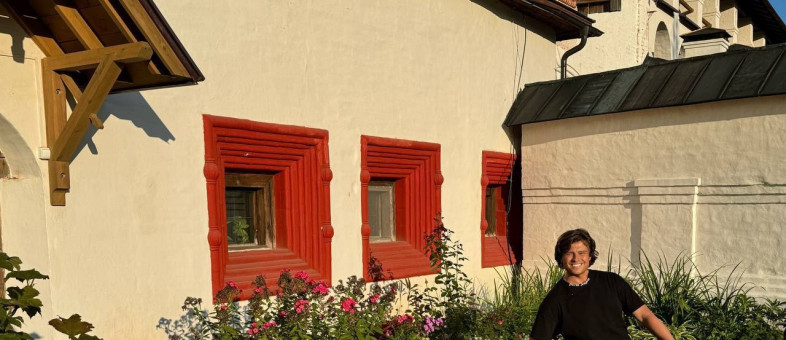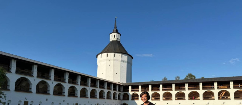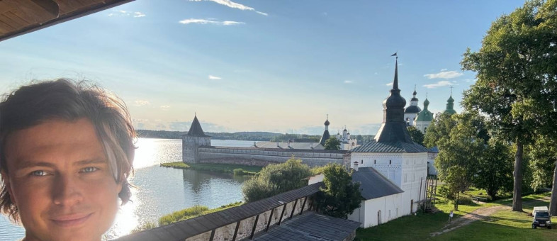 Российский певец с удовольствием прогулялся по ансамблю монастыря, побывал на обзорной экскурсии, где познакомился с историей и архитектурой обители. Особенно гостя вдохновили недавно отреставрированная церковь Преображения Господня, яркий келарский домик, Успенский собор, а также Московская и Вологодская башни.
