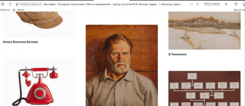 На цифровой платформе «Артефакт» появилась виртуальная экспозиция, которая знакомит с жизнью и творчеством писателя Василия Белова. На выставке представлены уникальные документы, посвященные родословной семьи Беловых, истории деревни Тимонихи, где родился писатель. В экспозиции можно увидеть подлинные личные вещи как самого Белова, так и его родных, отражающие все этапы плодотворной творческой жизни Василия Ивановича. Виртуальный гид создан на основе материалов, хранящихся в Центре В.И. Белова, и фондовых документов из Мемориального музея-квартиры писателя.