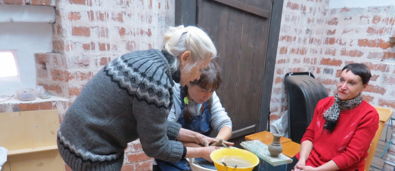 Марина Николаевна Васильева, народный мастер России, провела очередное занятие по обучению работе с глиной на гончарном круге.