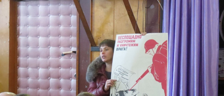 Музейщики представили проживающим и работникам учреждения выставку военного плаката. Н. В. Петрова прочитала лекцию «Сражающееся искусство» об изобразительном искусстве в годы Великой Отечественной войны.