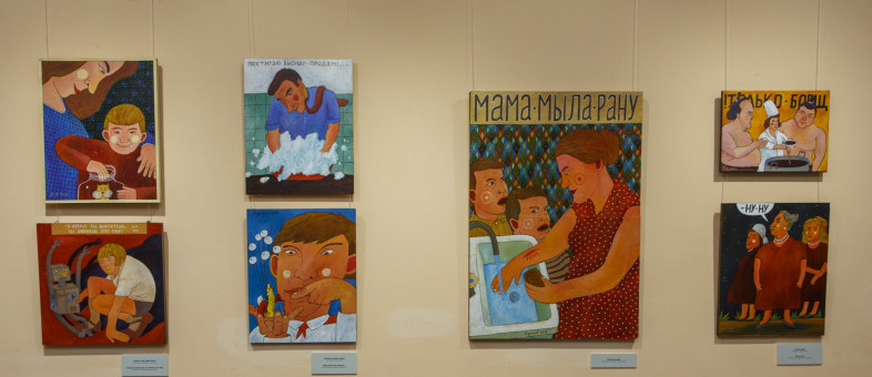 Под другим углом жизнь вологжан показал художник-повествователь Евгений Родионов. Его картины – это рассказ, история, притча или анекдот из жизненной реальности, так порой похожей на нашу, но совершенно не имеющей к ней, по словам художника, никакого отношения: «Афиша этой выставки чётко говорит – произведения Владимира – бывальщина, а мои – небывальщина. Но на вашем месте я не стал бы торопиться с выводами, а попросил бы задуматься, обратиться к себе и определить для себя грань – где для вас быль, а где небыль».