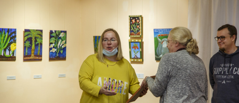 Заведующая экспозиционно-выставочным отделом Кирилло-Белозерского музея-заповедника Юлия Лебедева в приветственном слове заметила: «Проект «Вологодский калейдоскоп» мы открыли в феврале. В течение года в залах Народного дома прошли три выставки, на которых экспонировались работы 8 современных художников. «Бывальщина и Небывальщина» закрывает выставочный 2021 год, но не будет последней в данном проекте, и в будущем мы услышим и увидим новые имена».