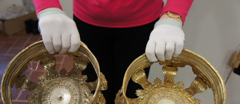 «Эти уникальные экспонаты в коллекции нашего музея появились в 1972 году и только дождались своей очереди для реставрации, – сообщает генеральный директор Кирилло-Белозерского музея-заповедника Михаил Шаромазов. – По форме венцы представляют собой царскую корону, которая возлагается на голову жениха и невесты при совершении таинства брака. Они напоминают о чистоте и царском достоинстве первосозданной человеческой четы – Адама и Евы, и знаменуют собою венцы, уготованные супругам в Царстве Небесном по окончании их земной жизни на пути к спасению. Момент наложения венцов считается временем снисхождения Божией благодати. Это не просто красивый элемент церковного убранства, а глубокий религиозный символ, являющийся незаменимым атрибутом таинства венчания. Старинные венцы были отреставрированы нашими специалистами в оборудованной мастерской по методикам ГОСНИИР, работами занималась художник-реставратор по металлу София Волкова. В ходе реставрационных работ с венцов были удалены загрязнения и продукты коррозии, стабилизированы коррозийные процессы, исправлены деформации, памятники были законсервированы, благодаря чему теперь имеют экспозиционный вид. Безусловно, оба памятника имеют художественную, научную и историко-культурную музейную значимость и входят в Музейный фонд Российской Федерации».