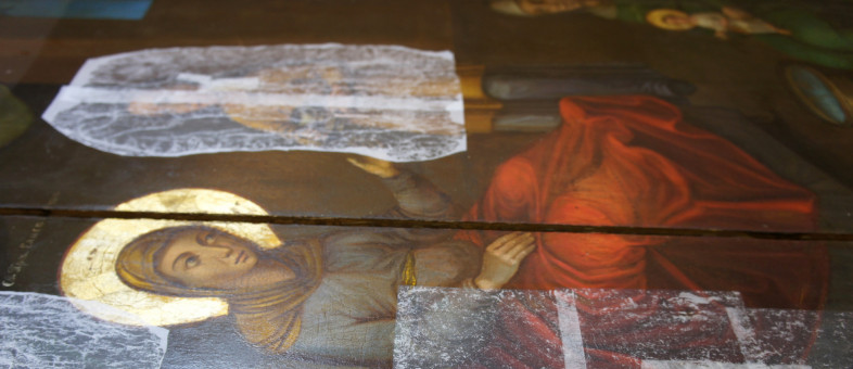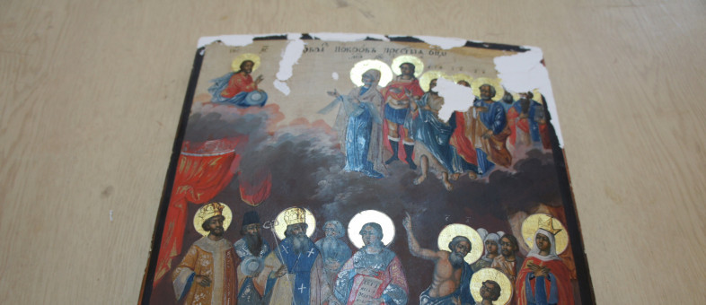 Икона «Покров Богоматери» XVIII века практически отреставрирована. После удаления потемневшего слоя оливы живопись заиграла яркими красками. Икона будто ожила! «Осталось выровнять утраты красочного слоя, затем отшлифовать в соответствии с поверхностью, а потом уже затонировать в цвет окружающей живописи», – поясняет Николай Петухов. Работа сложная и кропотливая, которая не терпит ошибок. В руках реставратора – культурное наследие страны, и сохранить его особо важная и ответственная задача.