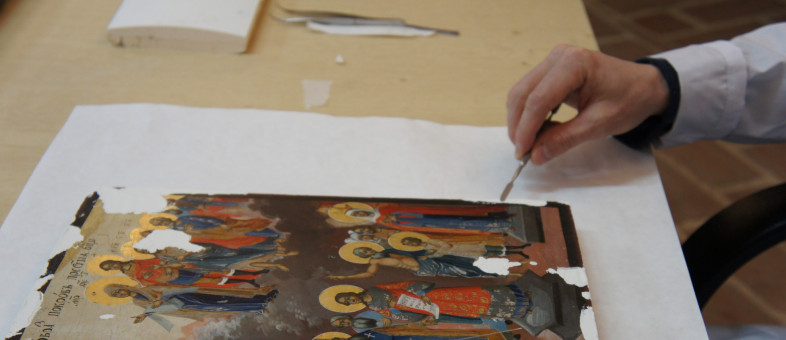 Реставрацией уникальных экспонатов занимается заведующий отделом реставрации живописи Николай Петухов. В его задачи входит укрепление паволоки, левкаса и красочного слоя икон, удаление загрязнений с основы памятника, заполнение трещин и утрат основы древесно-клеевой массой, выполнение пробного раскрытия, тонирование утрат красочного слоя и реставрационных вставок левкаса.