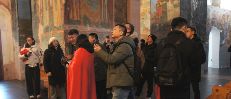 Представители КНР побывали в исторической экспозиции и первой каменной постройке монастыря – Успенском соборе XV века.