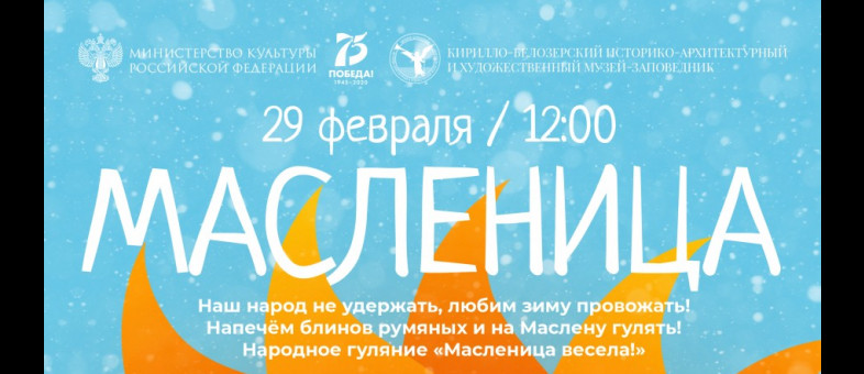 - Начало и открытие конкурса на месте проведения праздничного мероприятия «Масленица» на территории Кирилло-Белозерского музея-заповедника 29 февраля в 12.00.